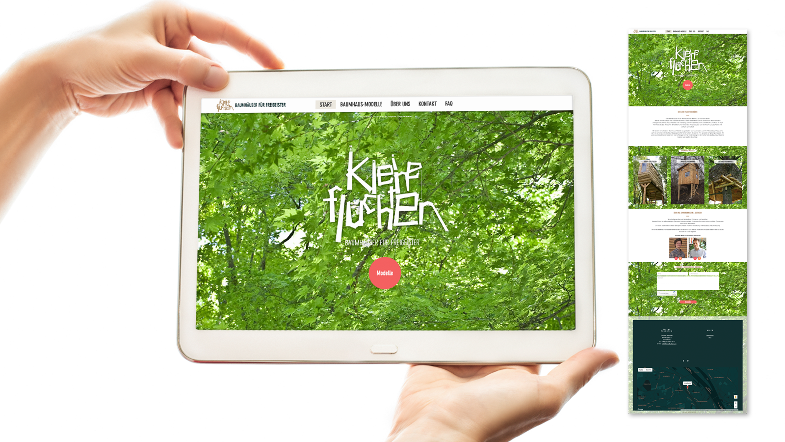 KLEINE FLUCHTEN ist eine von mir lang gehegte Idee, neben meinem Hauptberuf als Kommunikationsdesigner Baumhäuser für Kinder und Erwachsene zu bauen. Nach dem ersten Projekt habe ich hierfür ein Logo gestaltet, eine Bildsprache entwickelt und eine Webseite mit dem Baukastensystem »Wix« und einen extra Blog in Wordpress umgesetzt.